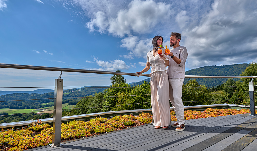 Terrasse mit Fernblick im Hotel Bayern